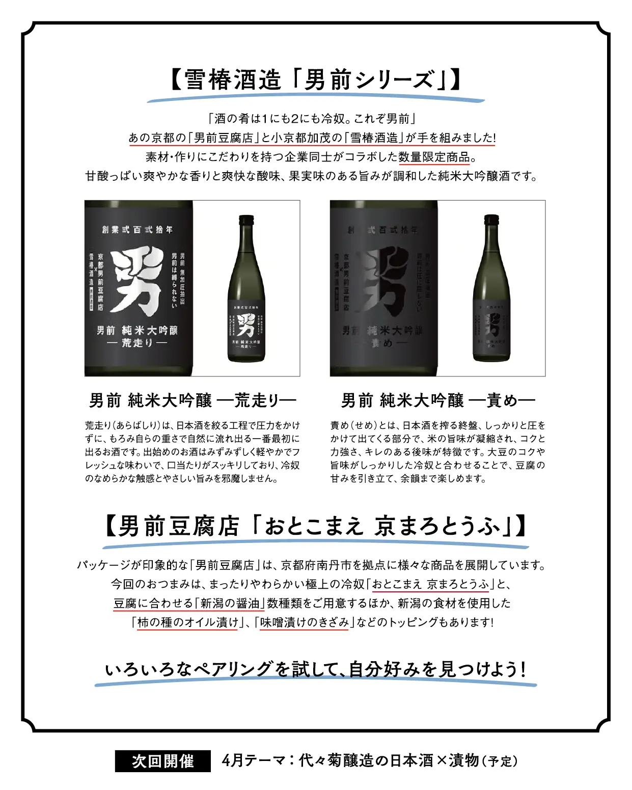 雪椿酒造 男前シリーズ × 男前豆腐
